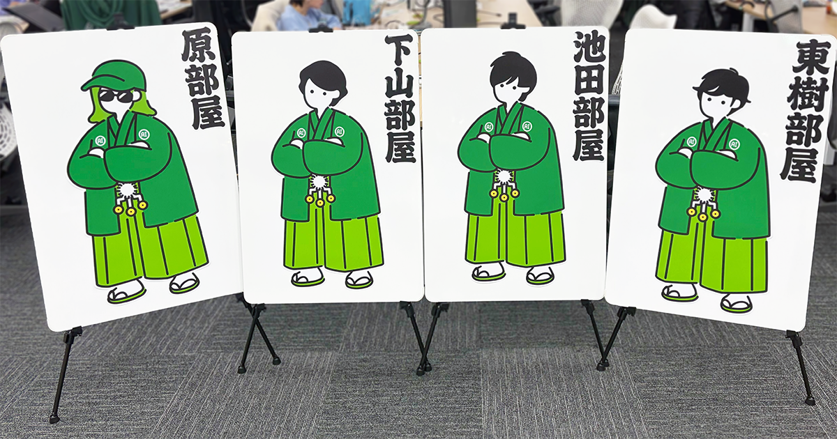 今回、AI相撲部屋の推進設計を担ったカルチャー推進室の梅本さんと、クリエイティブを担当した丸さんにお話を聞いてきました!