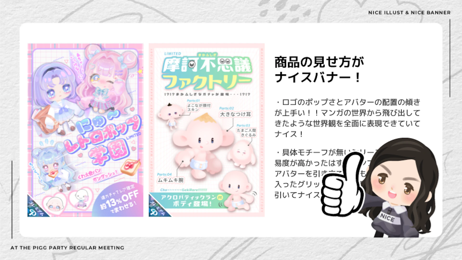 今までに作られたピグのイラストや、バナーなどのデザインも細かくみていくと、視点誘導だったり、体験設計のための色合いだったり、色んなデザインの工夫がされていて、そこがすごく印象的でした。