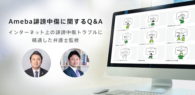 誹謗中傷問題について、豊富な経験を有する弁護士の加藤博太郎氏および轟木博信氏監修のもと作成した、初動の所作を含むQ&Aサイトを「Ameba」上で公開しています。直面するかもしれない問題に対する正しい対処法を提供します。